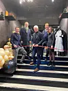 Hamars ordfører erklærer butikken for åpnet. Til venstre William Follestad og Ola Mæhle. Til høyre Bengt Follestad og Birgitte Follestad Vold