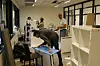 Mange forventningsfulle og svette tekstilagenter på Fornebu onsdag, da innflyttingen i nye Norwegian Fashion Center startet.
